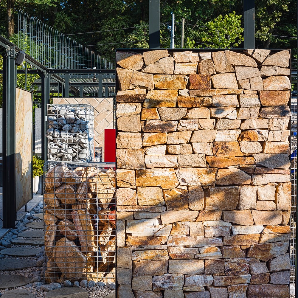 La pietra naturale decorativa di tipo Filleti (strisce) è venduta al metro quadrato e ha un colore molto bello - un mix di colori, anche se potrebbero esserci strisce con una leggera sfumatura marrone. È particolarmente resistente, essendo noto per la sua capacità di far fronte ai drastici cambiamenti climatici. In questa versione il prodotto è disponibile solo in confezione pallettizzata.