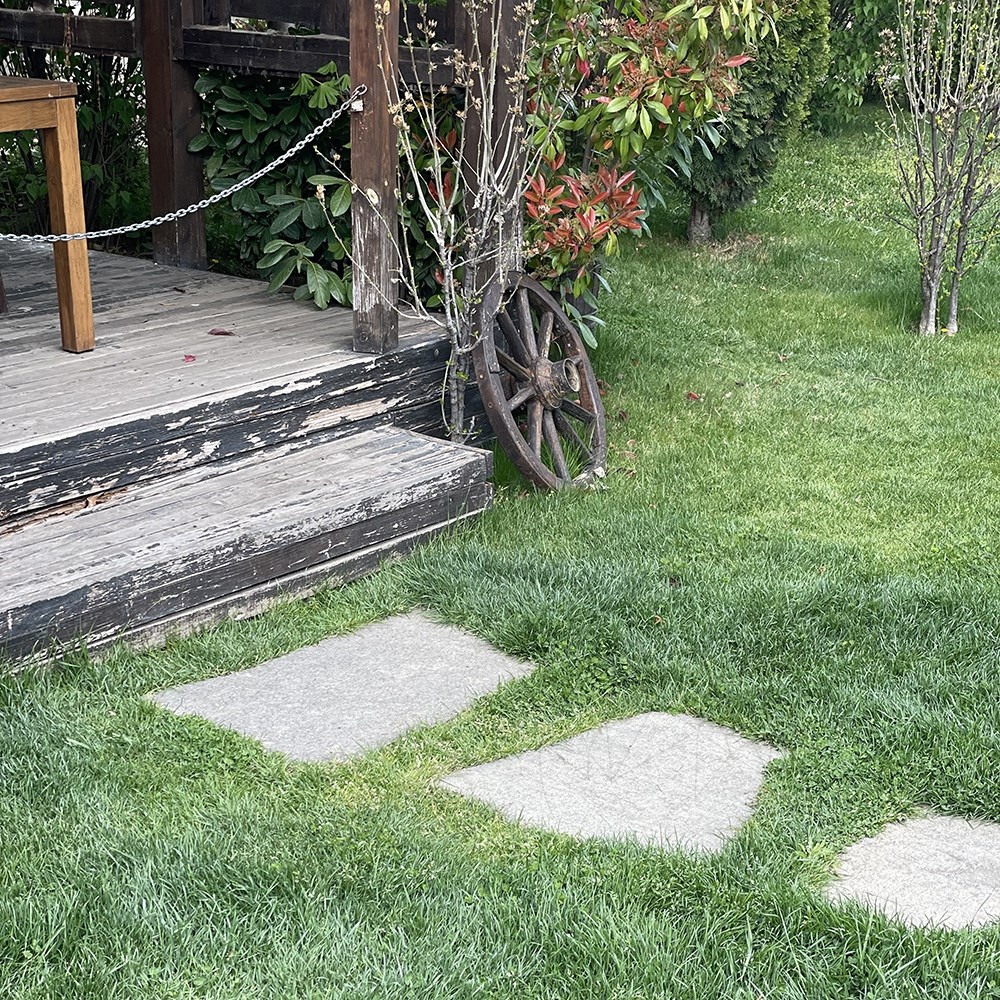 Scopri il look rustico, sempre alla moda, sempre affascinante! Le lastre in ardesia Homa sono particolarmente resistenti per gradini da giardino, passerelle, pavimentazioni da giardino e intorno alla piscina, soprattutto nelle aree ad alto traffico. Integrandosi perfettamente nel design del giardino, l'ardesia offre un'ottima soluzione. Le lastre in ardesia Homa sono di grandi dimensioni, ma lasciano molta libertà compositiva.