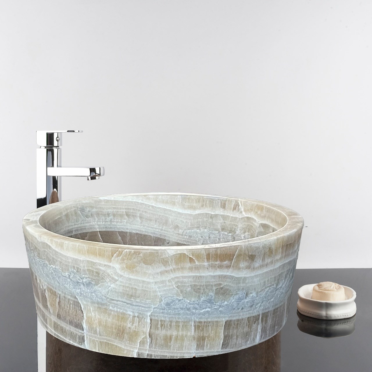 Il lavandino può essere installato in un angolo o al centro della stanza, sia essa un bagno o una cucina. Indipendentemente da dove venga posizionato, questo oggetto estremamente utile deve integrarsi armoniosamente nell'atmosfera dell'intera stanza. Il lavabo in onice, modello RS-12, ha un colore rassicurante, così come la sua consistenza. Grazie al suo colore crema e alla sua forma, questo lavabo può essere integrato in stili d'ambiente quali rustico, mediterraneo, classico o minimalista. Per enfatizzare lo stile scelto, si può ricorrere anche all'uso di un piano di lavoro in marmo per il bagno/cucina o, ancora meglio, al rivestimento delle pareti, totale o parziale. Così il lavandino in onice troverà la sua piena espressione nel vostro bagno o nella vostra cucina.