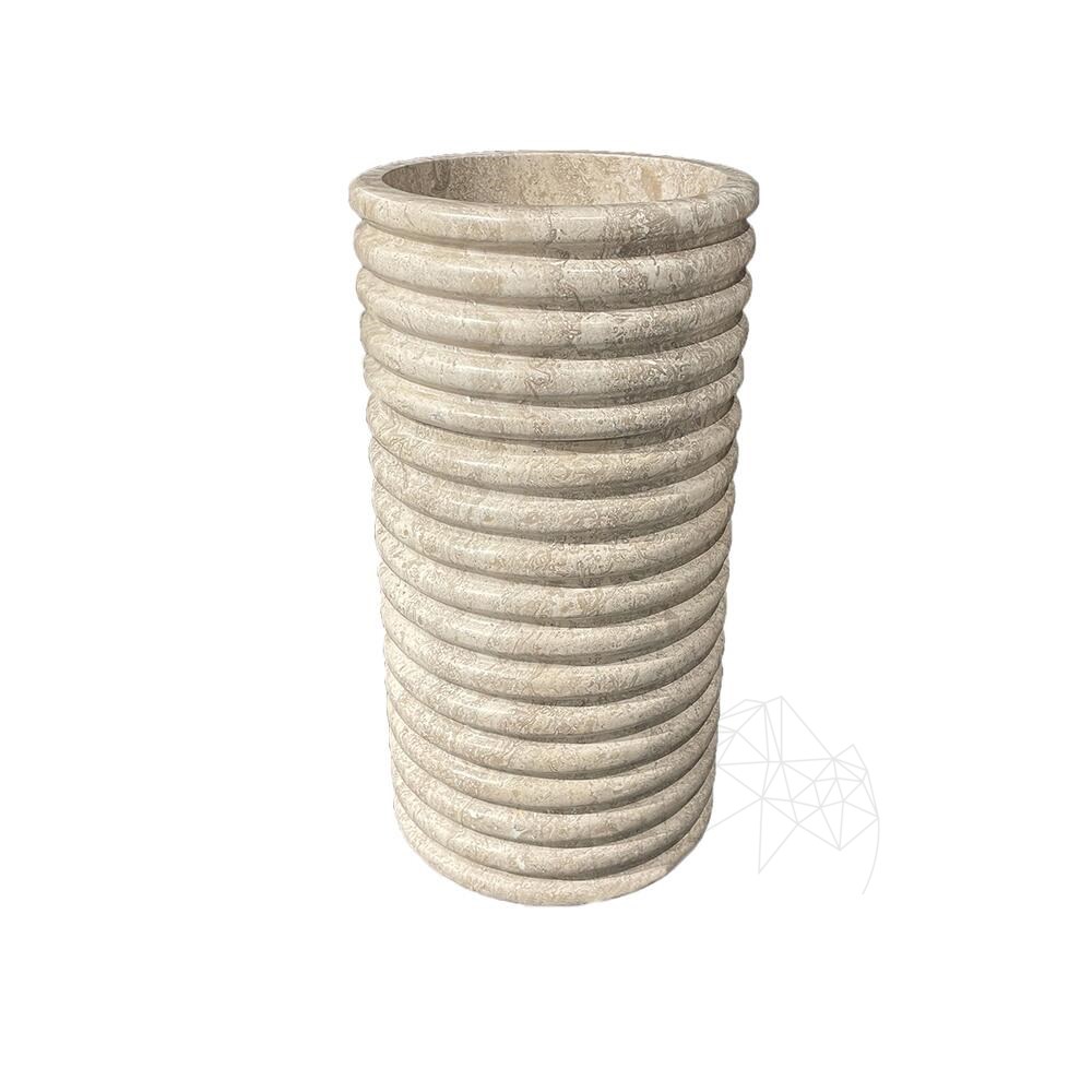 Il materiale scelto per questo lavabo, il travertino latte, conferisce un aspetto naturale e sofisticato, donando un tocco di eleganza allo spazio in cui è integrato. Ogni dettaglio è attentamente realizzato per mettere in risalto la particolare texture del travertino, garantendo così una lunga durata.