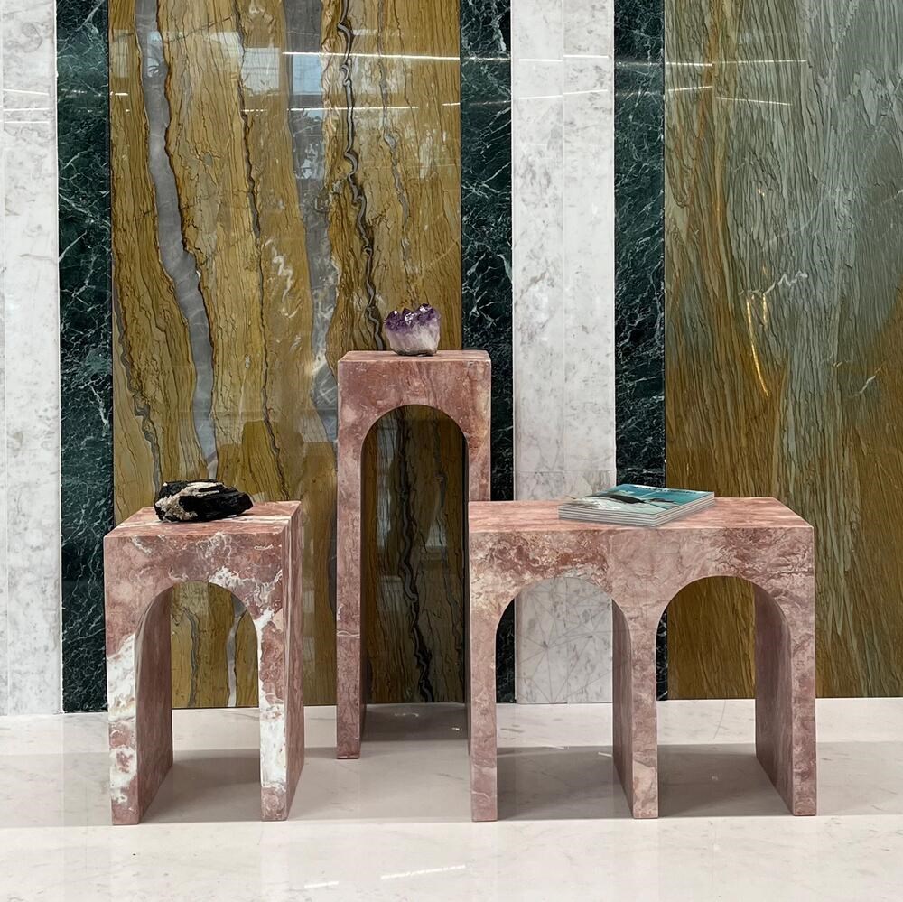 La piccola consolle Archy in travertino rosso oppio è molto più di un semplice mobile; È un'affermazione di stile e raffinatezza, che dona un tocco di eleganza e carattere in più a qualsiasi spazio.