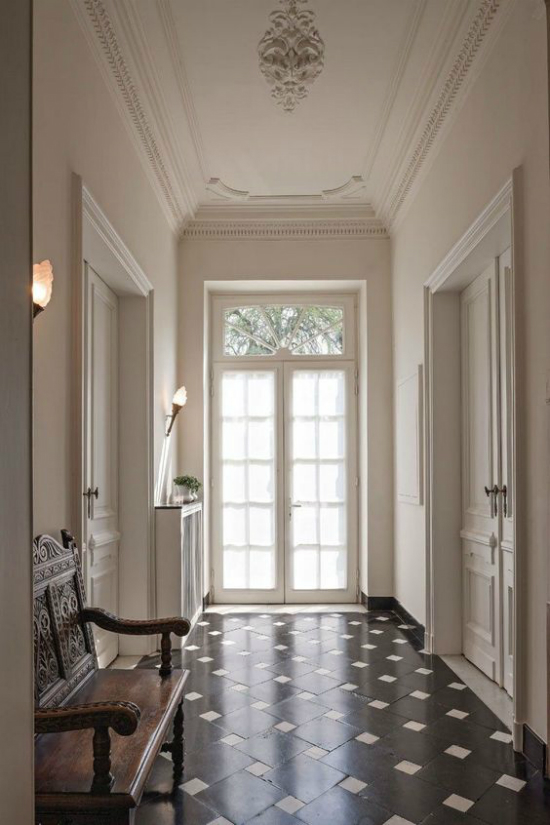 Se arriva il progetto di decorazione per un corridoio classico-elegante, le piastrelle lucide, le superfici spazzolate, cesellate o burattate rappresentano un altro metodo, così frequentemente utilizzato non solo in Romania ma in tutto il mondo. Ovviamente un corridoio con una pavimentazione del genere deve mantenere il suo aspetto tradizionale, rustico o mediterraneo, e le superfici lucide non giocheranno più un ruolo così importante. Ciò che può essere combinato in uno spazio ampio difficilmente produrrà gli stessi risultati in uno spazio ridotto. Quando decidi di decorare la tua casa con la pietra naturale, è facile capire perché la pavimentazione in piastrelle di ceramica nel corridoio è fuori discussione.