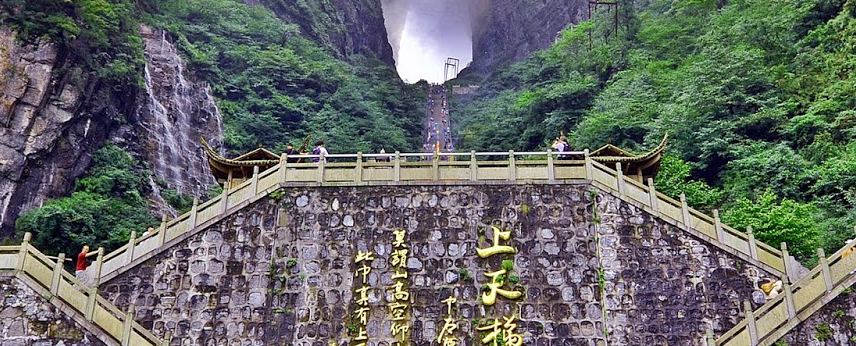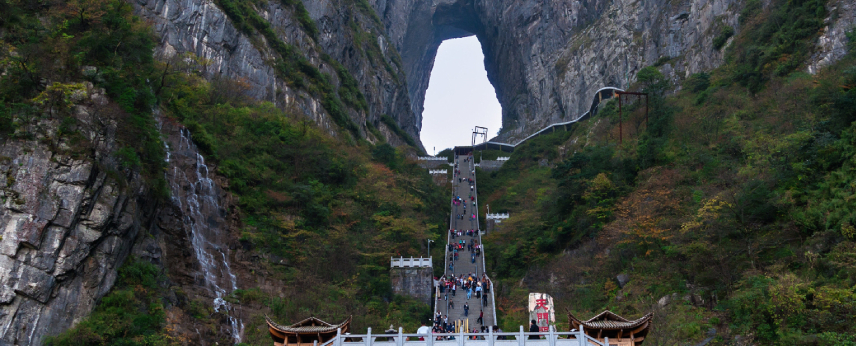Potrebbe essere stato il nome di un libro, ma solo un angolo del mondo creato dalla natura. Una meraviglia della natura modellata tra due cime montuose che ti dà la sensazione di raggiungere finalmente un luogo dove puoi incontrare Dio: la fine del mondo e l'inizio del paradiso. Heaven's Gate si trova nelle montagne Tianmen della Cina , a 1500 m di altitudine e rappresenta il più grande buco di grotta eroso, modellato dall'erosione del suolo.