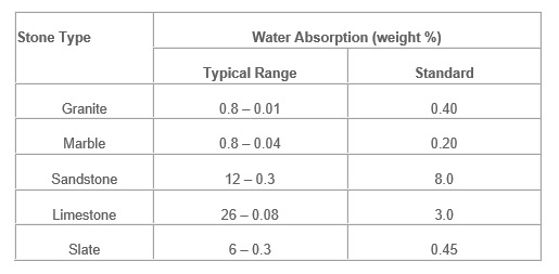 L'assorbimento d'acqua della pietra è un indicatore estremamente utile che dimostra la resistenza del materiale alle macchie. Un elevato assorbimento d'acqua significa che la pietra può macchiarsi a causa dei liquidi. La capacità di una pietra di assorbire acqua può variare notevolmente a seconda della natura della pietra. Il granito e il marmo hanno un tasso di assorbimento inferiore allo 0,1%, mentre il calcare e l'arenaria possono registrare un tasso superiore al 10%. Questi numeri parlano da soli delle caratteristiche del materiale, e in particolare delle aree in cui le pietre possono essere utilizzate al meglio, nonché della cura successiva della pietra naturale.
