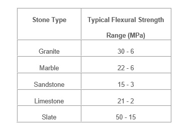 Ecco alcuni esempi di valori di resistenza alla flessione per alcune delle pietre naturali più famose: