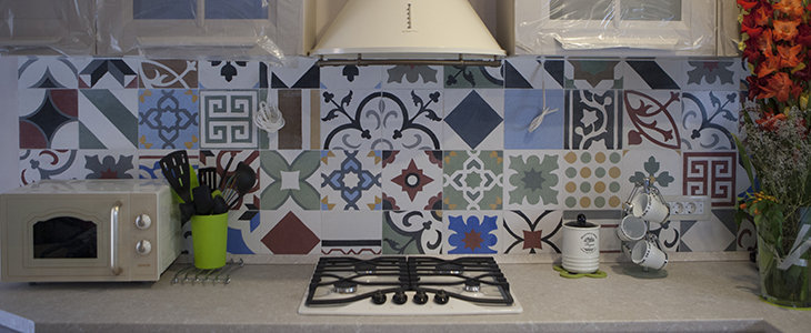 Dettaglio parete cucina – piastrelle decorative in terrazzo
