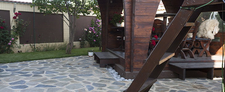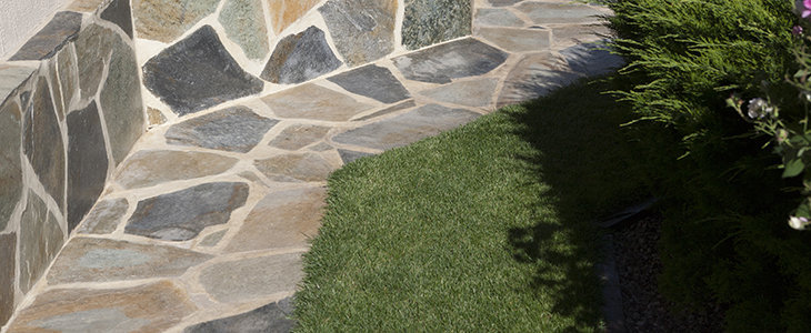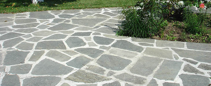 Cortile rivestito con ardesia poligonale Sikis – Lastre lastricate per patio