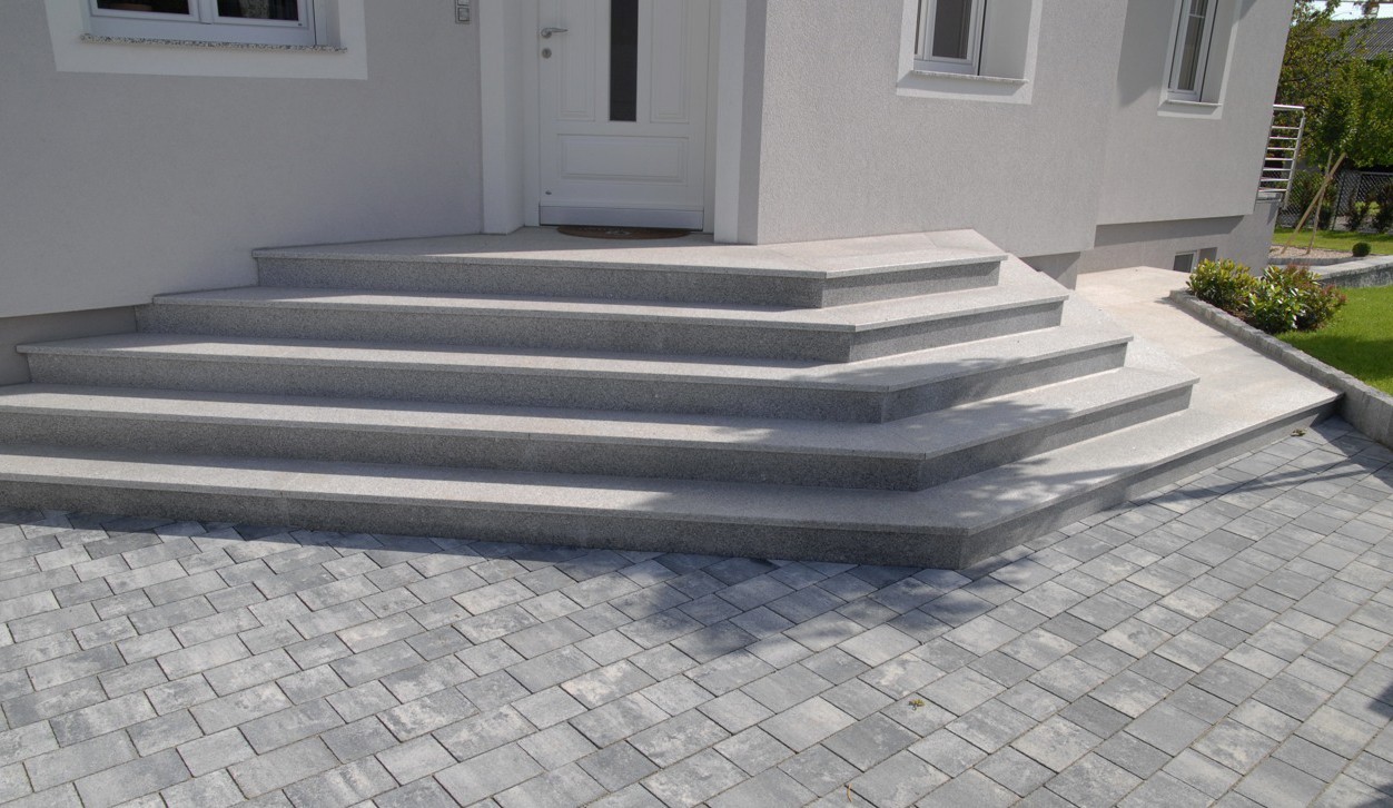 I tipi di pietra più diffusi per la costruzione di gradini esterni sono il travertino spazzolato, il granito fiammato, il marmo bocciardato e l'ardesia spazzolata. Tutto dipende dalle tue preferenze personali e dal tuo stile. Ogni pietra esprime qualcosa di diverso. Travertino – calore, vicinanza, granito – apertura, sottile eleganza, marmo – imponente raffinatezza, ardesia – discreta stravaganza. Tenendo conto di queste qualità, è possibile sviluppare diversi concetti ambientali per la progettazione e la costruzione di scale esterne.