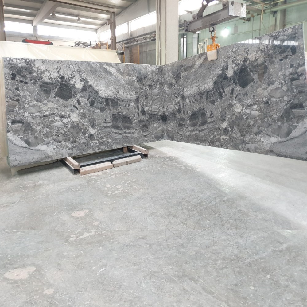 Parte della collezione Autograph, il Marmo Grigio Superiore viene consegnato sotto forma di lastre di spessore 2 cm e finitura lucida.