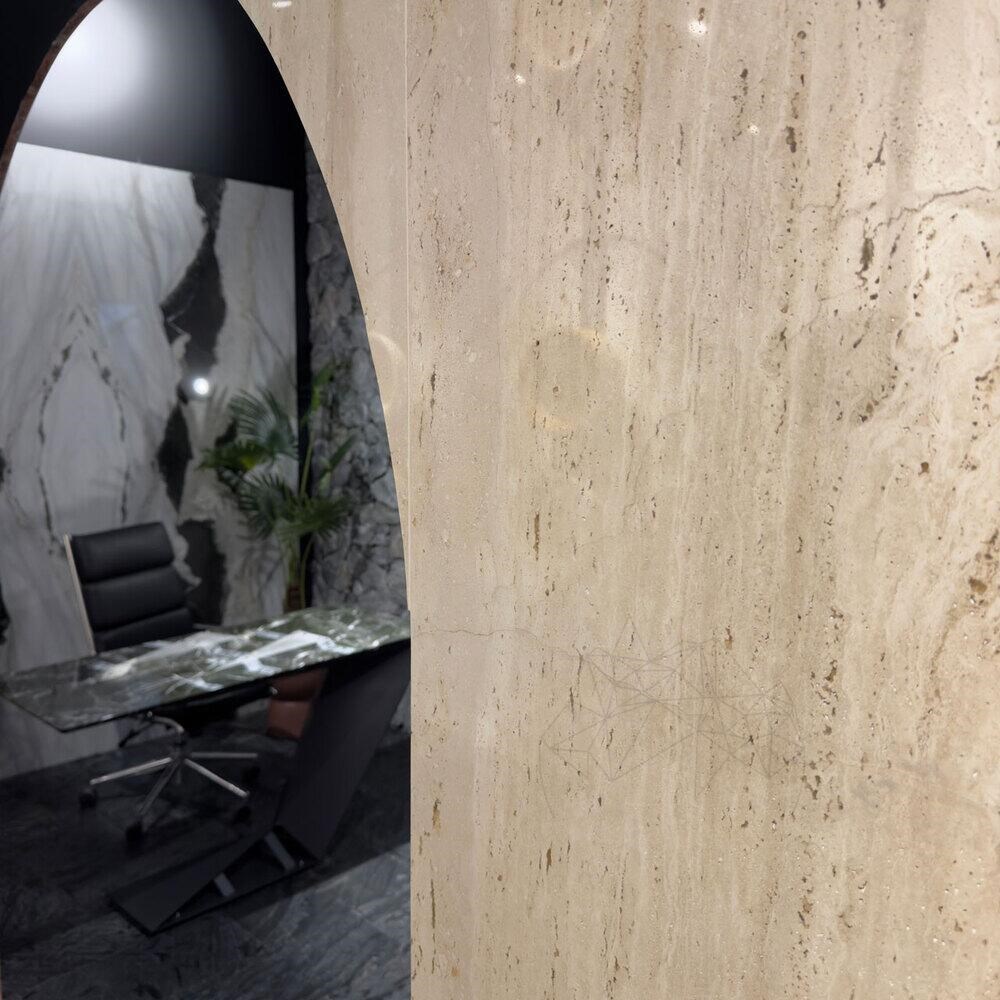 Scegli la lastra epossidica Travertino Romano Venato da 2 cm per aggiungere un tocco di eleganza naturale e una straordinaria resistenza al tuo progetto.