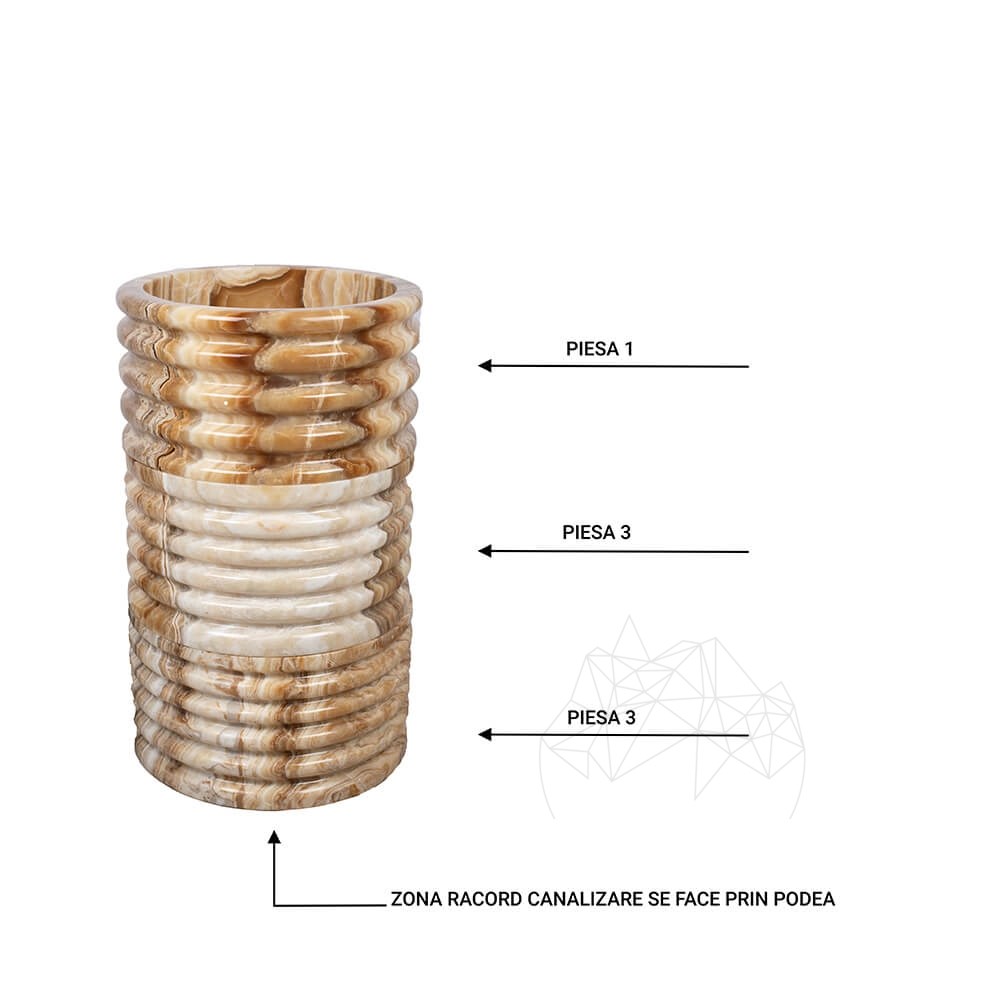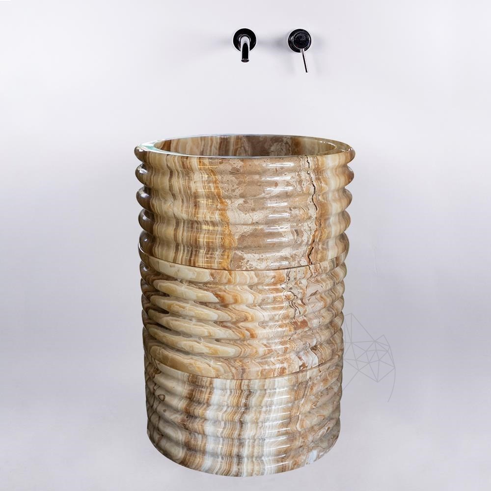 Di straordinaria bellezza, il lavabo Arco Onyx presenta diverse confortevoli varianti di colore: crema, marrone, bianco, giallo, sfumature che nascono da milioni di anni. Questi suggeriscono eleganza e raffinatezza, qualità in contrasto con l'alto grado di resistenza di questo oggetto.