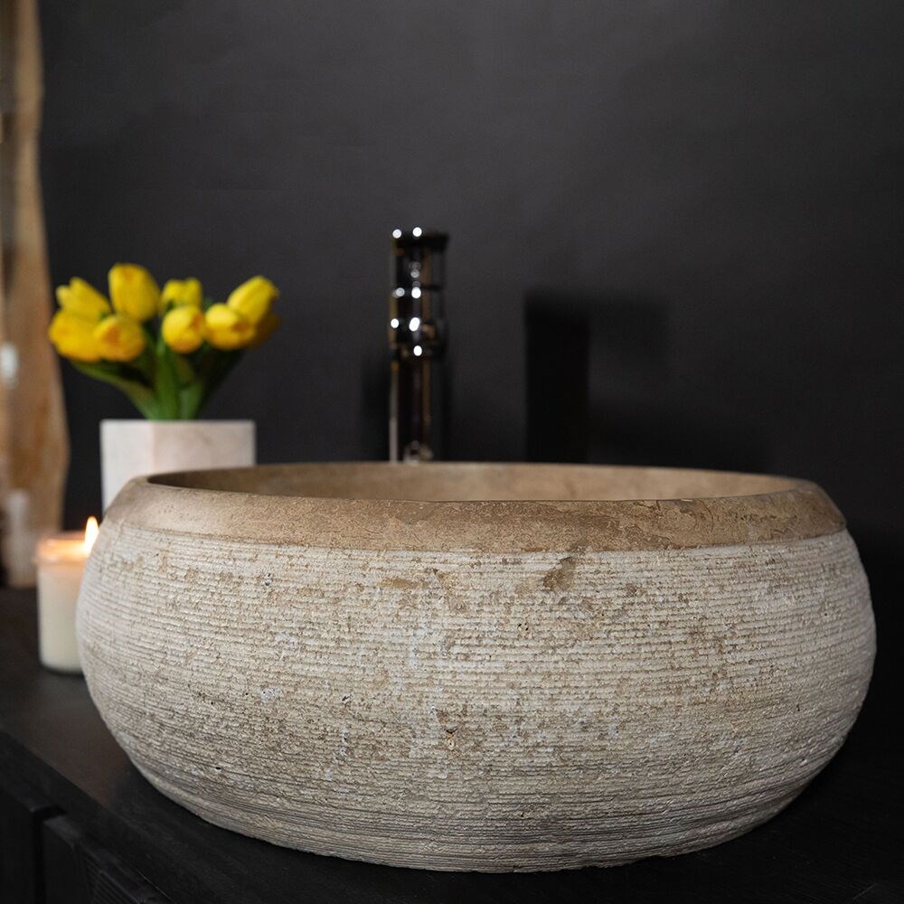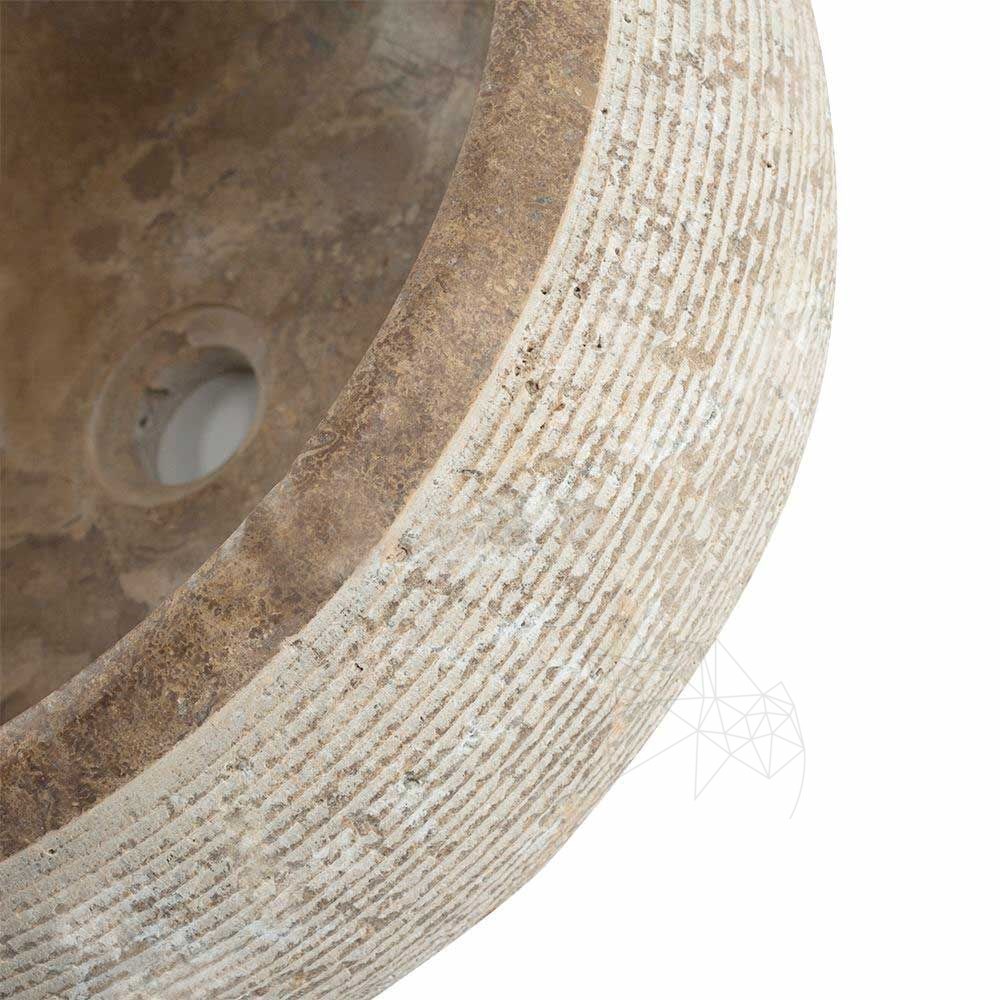Lavabo bagno in travertino Latte, modello RS-24 ha un aspetto gradevole che risulta dall'accostamento di due tipologie di superficie: lucida all'interno e ruvida all'esterno grezza. Così, grazie all'interno, è possibile abbinare il lavabo in travertino ad un certo tipo di arredamento d'interni: elegante, classico, rococò o moderno, mentre l'esterno può essere classificato come rustico, mediterraneo, marocchino, ecc.