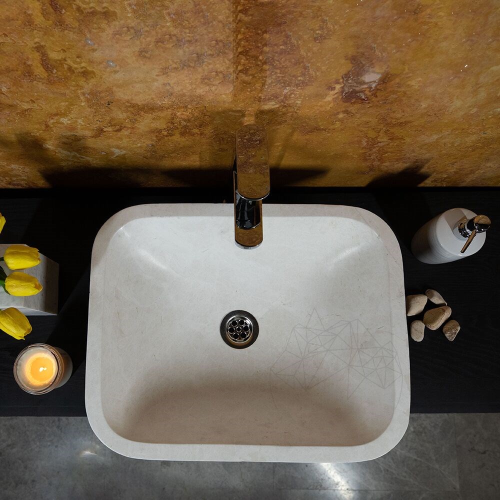 Il lavabo da bagno in pietra naturale Cappucino si inserisce in innumerevoli spazi, dal privato al pubblico. Usalo nel bagno matrimoniale o dei bambini (c'è anche resistenza), bar, ristoranti, hotel, club e sedi aziendali. Scopri che puoi montarlo anche al bar!