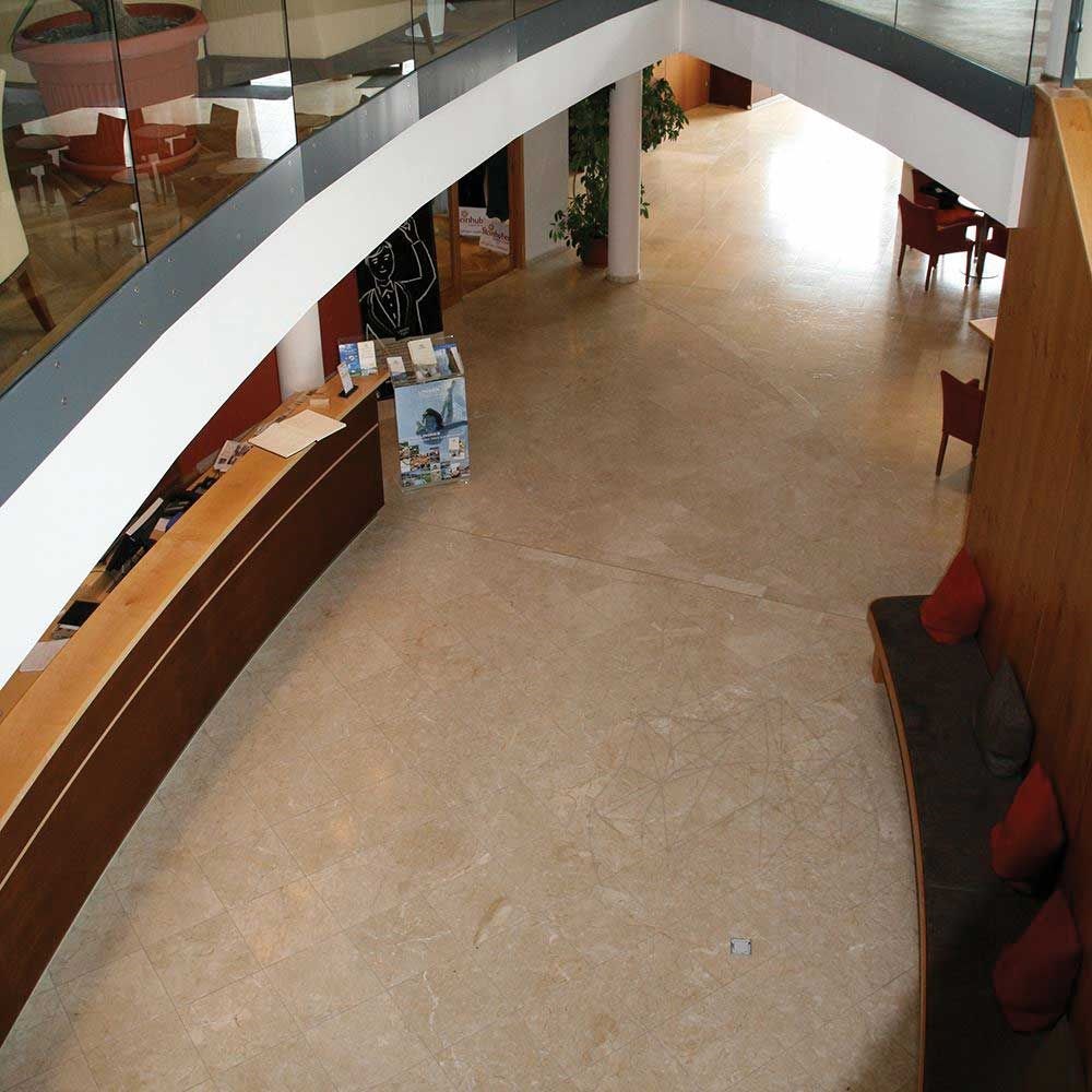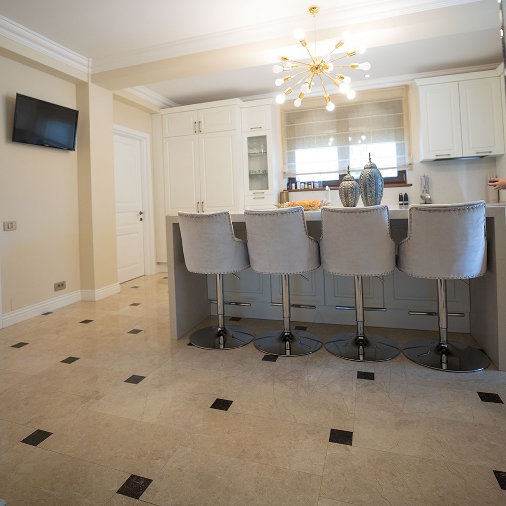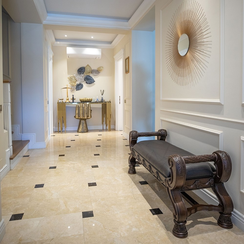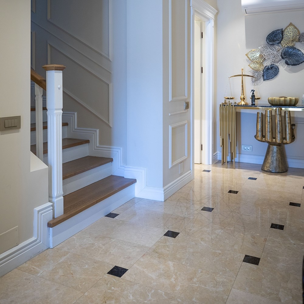 Sottili inserti e delicate nervature messe in risalto dai giochi di luce naturale e artificiale. Da tutta questa combinazione di caratteristiche risulta una grande versatilità del marmo Royal Cream.