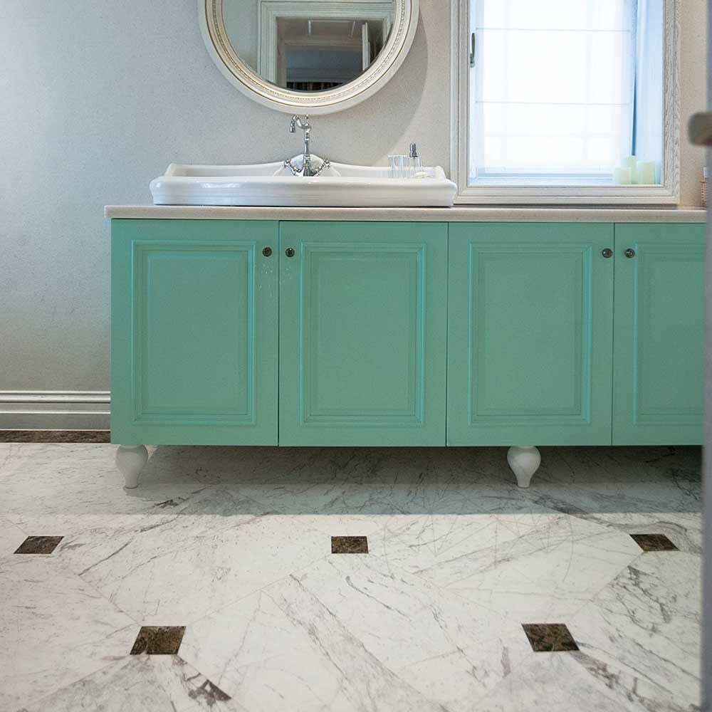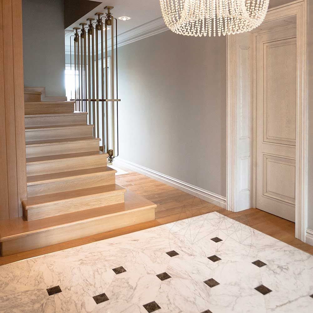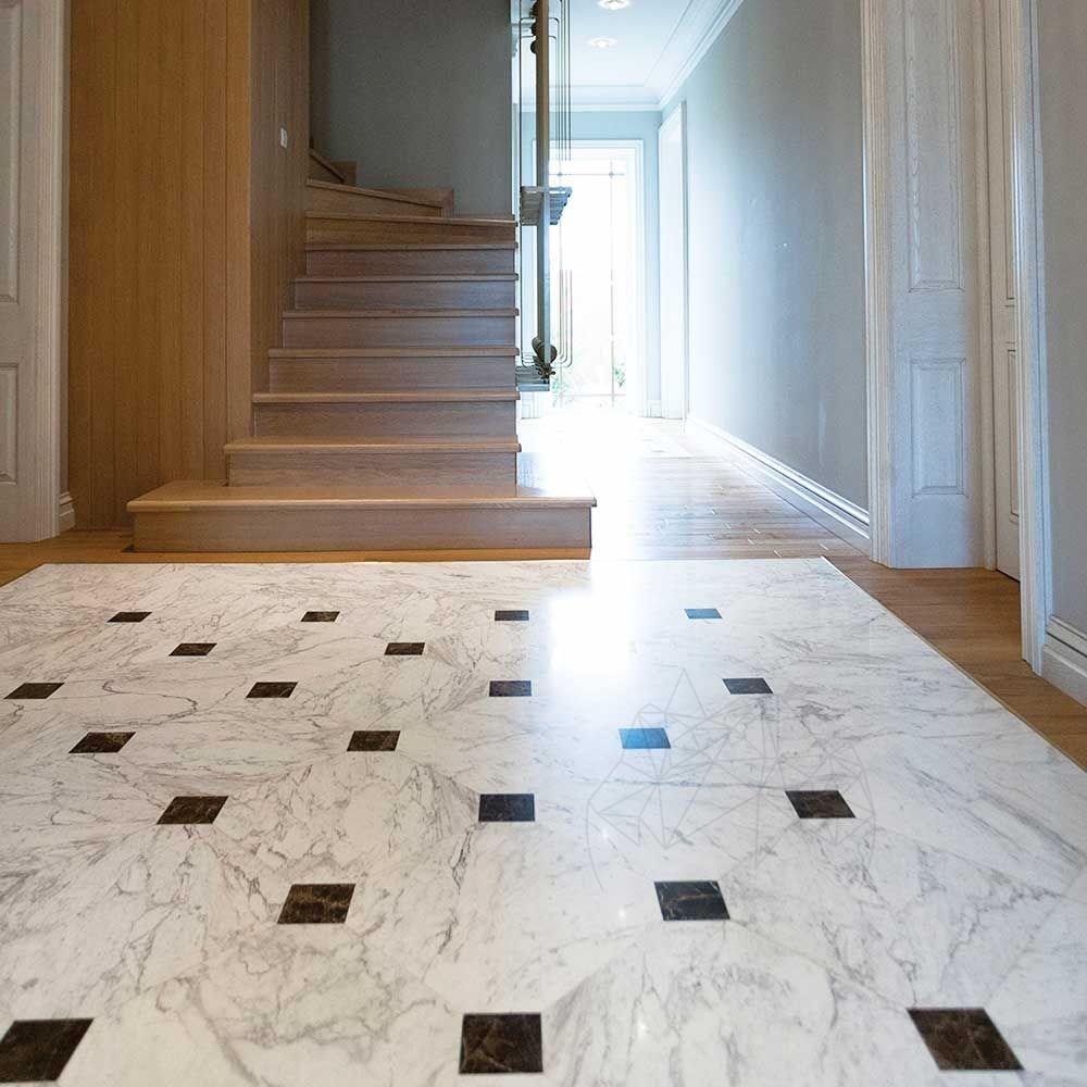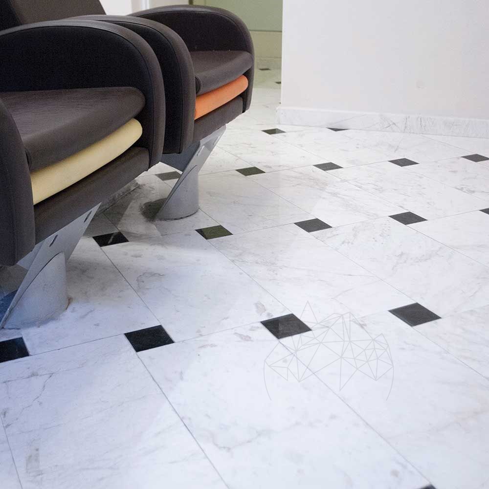 Anche se montato all'esterno, il marmo viene pulito dopo la posa e prima di essere impermeabilizzato con LTP Grimex;
