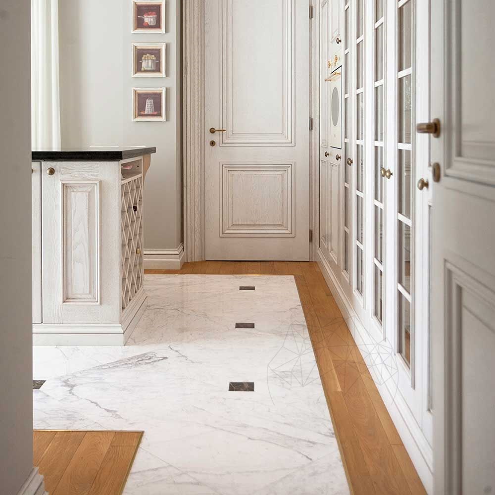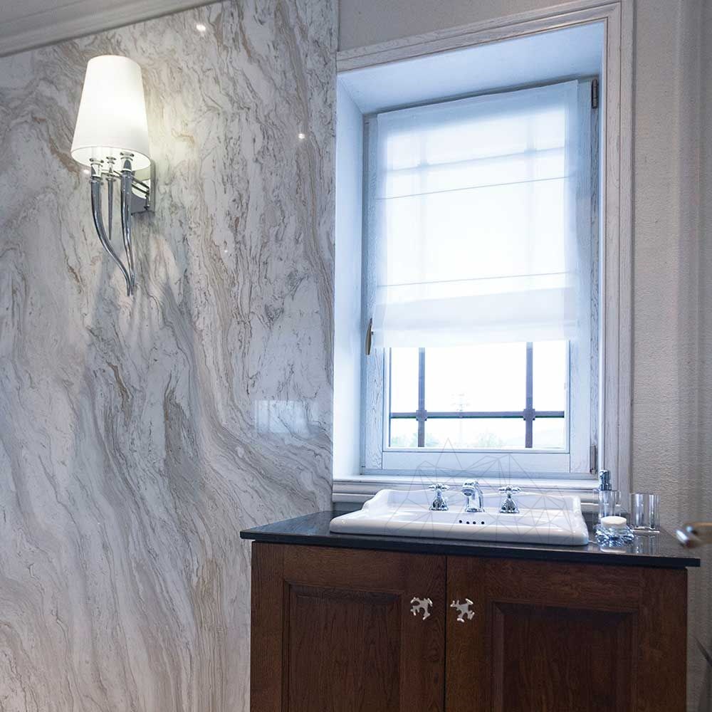 Questa pietra naturale può essere utilizzata per rivestire pavimenti o pareti di soggiorni, spa, cucine, ingressi o sale d'attesa, caminetti, nonché per realizzare piani di lavoro, ecc. Nel design esterno può essere utilizzato per rivestimenti verticali, funzionando perfettamente nella copertura di recinzioni, facciate di edifici, plinti, ecc. Applicando soluzioni impermeabilizzanti, il fascino discreto di queste lastre di marmo Volakas lucido sarà mantenuto ancora più a lungo.