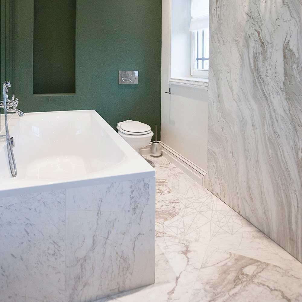 Organizza il tuo spazio con un marmo Volakas con finitura lucida. Questo tipo di marmo può essere utilizzato sia per rivestimenti interni (orizzontali e verticali) che per rivestimenti esterni verticali. Sia che tu voglia dare un nuovo aspetto alle superfici delle tue pareti o superfici orizzontali in cucine, bagni o corridoi, o che tu voglia rinnovare i gradini o il pavimento di una spa, questo marmo è la scelta perfetta.