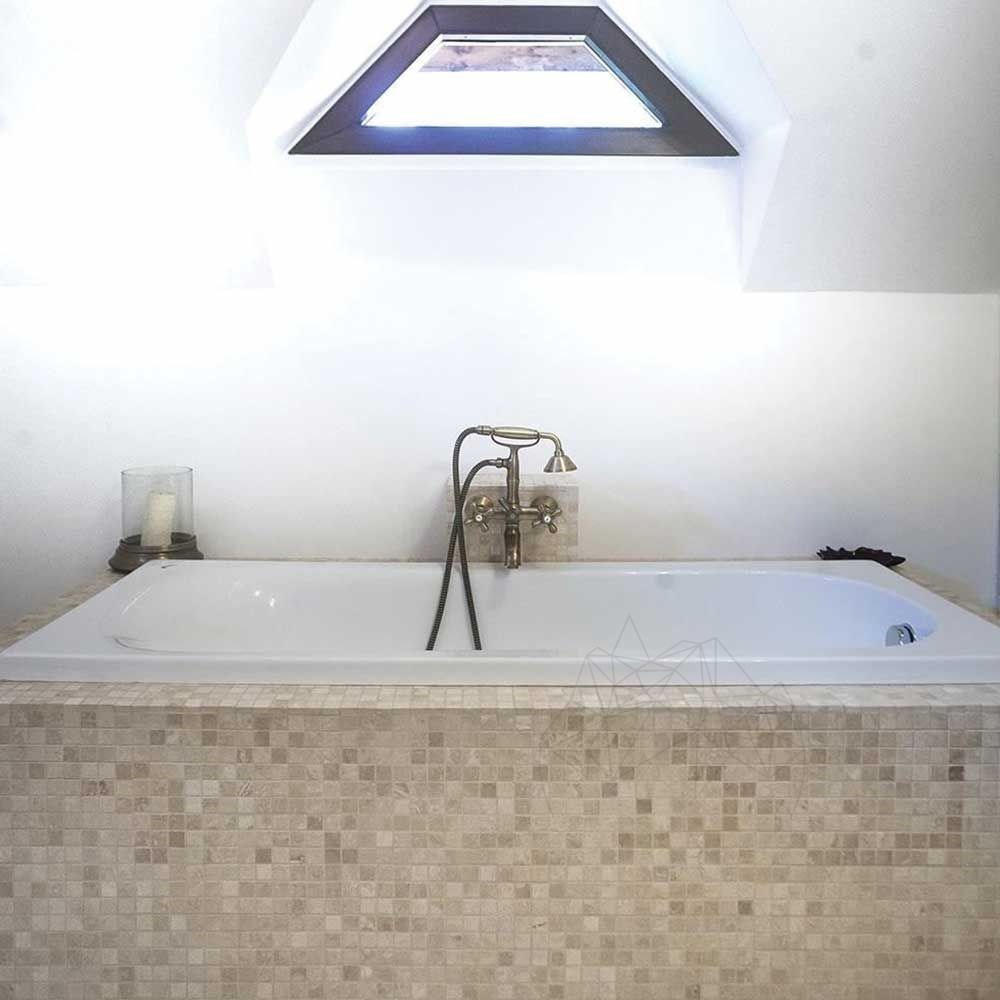 In termini di design degli interni, l'aspetto lucido del travertino classico può essere eguagliato solo dal suo concorrente, il marmo. Questa pietra naturale crea un'atmosfera accogliente e può essere associata a un'ampia varietà di pavimenti in travertino. Pertanto, con questo prodotto puoi apprezzare pareti di bagni, cucine, spa (spazi umidi) o persino soggiorni e corridoi. Funziona anche nel rivestimento orizzontale: pavimenti, controsoffitti, davanzali, cornici decorative, ecc. Un altro grande vantaggio offerto al design degli interni è la facile installazione di questo mosaico classico in travertino lucido. Indipendentemente dall'ambiente, privato o pubblico, il mosaico in travertino Classicm con finitura lucida sottrae all'anonimato qualsiasi design d'interni, conferendogli una personalità speciale.