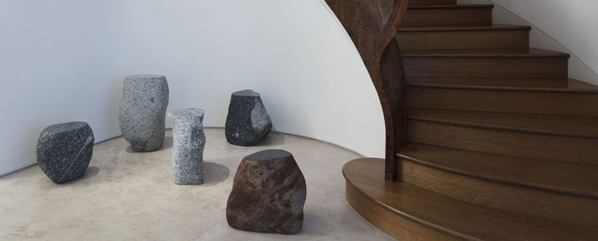 " Boulders " definisce un viaggio personale all'interno della montagna che circonda il villaggio italiano di Carisolo, un'esplorazione della natura – il modo in cui l'acqua del fiume definisce e delinea la pietra. Il potere del fiume può essere percepito con ogni pezzo di granito, come parte di questo processo naturale che osserviamo. Inoltre, la forza del fiume è evidente nel modo di scolpire il paesaggio da cui viene estratta la pietra, il letto del fiume e il modo in cui abrade le rocce, mentre rotolano e diventano perfettamente lisce. L'intera storia risiede in una sedia pura e grezza, un viaggio verso se stessa e la vera natura. Il modo in cui questi sono scolpiti rivela ancora una volta il legame del designer con la natura. Progettate per una mostra, le sedie sono direttamente proporzionali alle dimensioni del corpo umano, puntando ancora una volta sul lato reattivo e funzionale degli oggetti creati da Max.