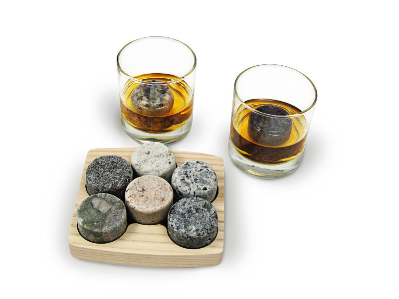 Di tutti questi "avvicinamenti" al gusto, il ghiaccio gioca la parte principale. Eppure il ghiaccio non riguarda solo il raffreddamento del contenuto, ma anche una diminuzione, attraverso l'assunzione di acqua, del gusto e dell'odore. E poi, per essere influenzati solo dalla temperatura, entrano in scena le pietre di whisky (realizzate in pietra naturale).