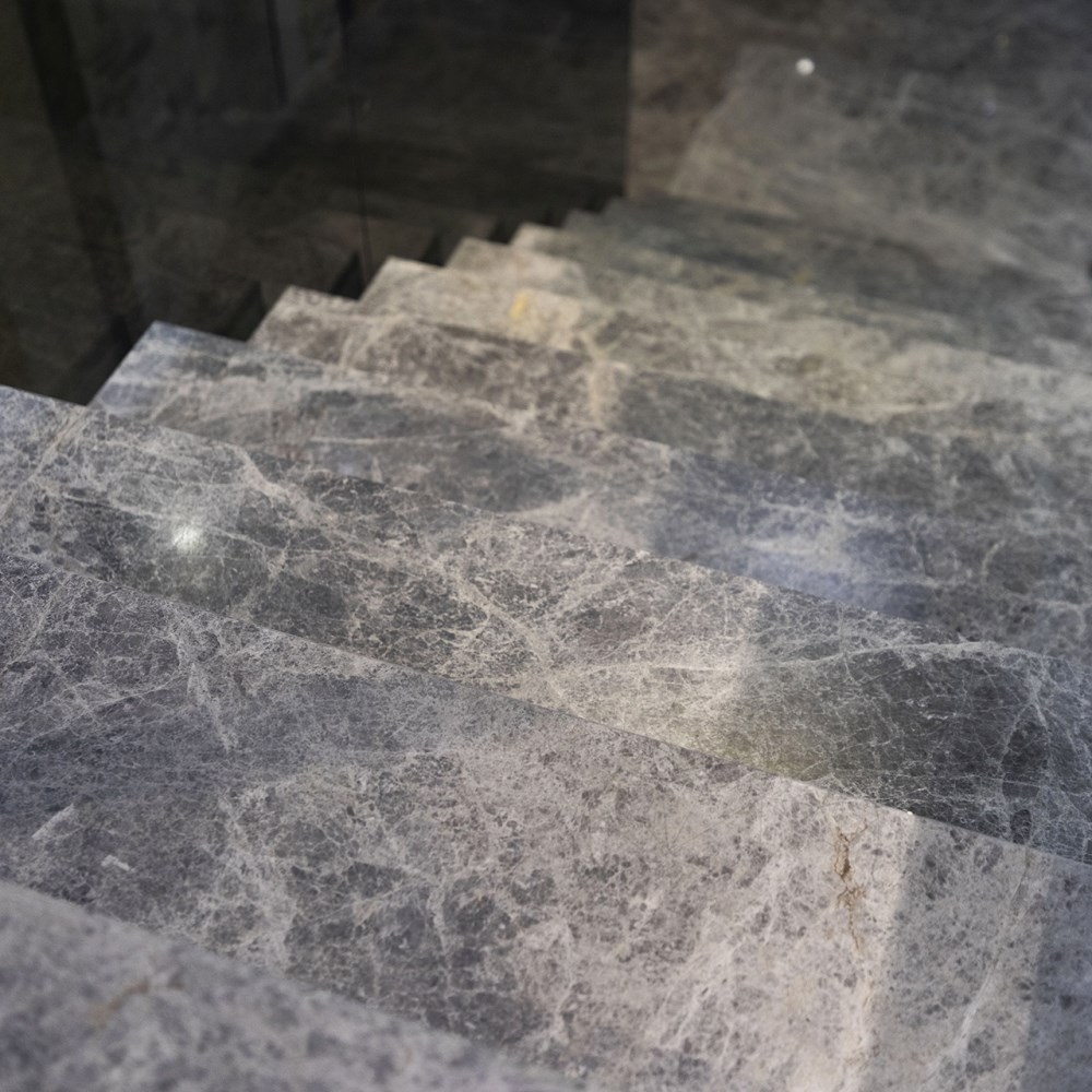 Fie ca sunt Blaturi de Bucatarie, Glafuri sau Trepte , clientii nostri folosesc marmura Tundra Grey polisata cu grosime de 2 cm.