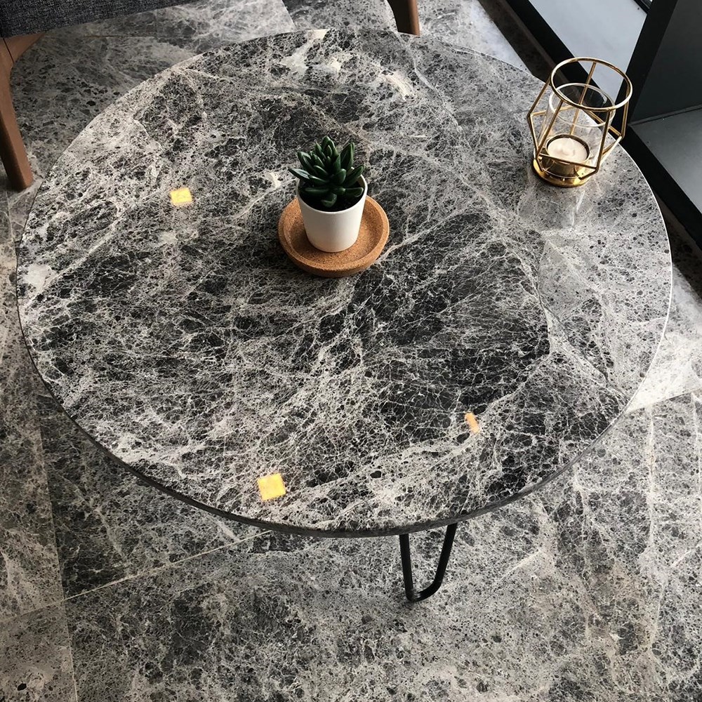In cazul blaturilor de bucatarie sau baie recomandam grosime de 3cm, fara probleme poate sa fie utilizata si 2cm. Vrei o suprafata unica a blatului tau din bucatarie sau baie, alege marmura Tundra Grey polisata. Absorbtia de apa scazuta si rezistenta la socuri mecanice fac blatul util si practic. Unicitatea si aspectul o recomanda in cazul amenajarilor pretioase, cu care te poti lauda. In sectia noastra de productie executam blaturi personalizate / „tailor made” prin debitarea direct din lastre, aceasta se face dupa masuratori precise si dupa verificarea locului de montaj (peretii trebuie sa se inchida in unghi drept).