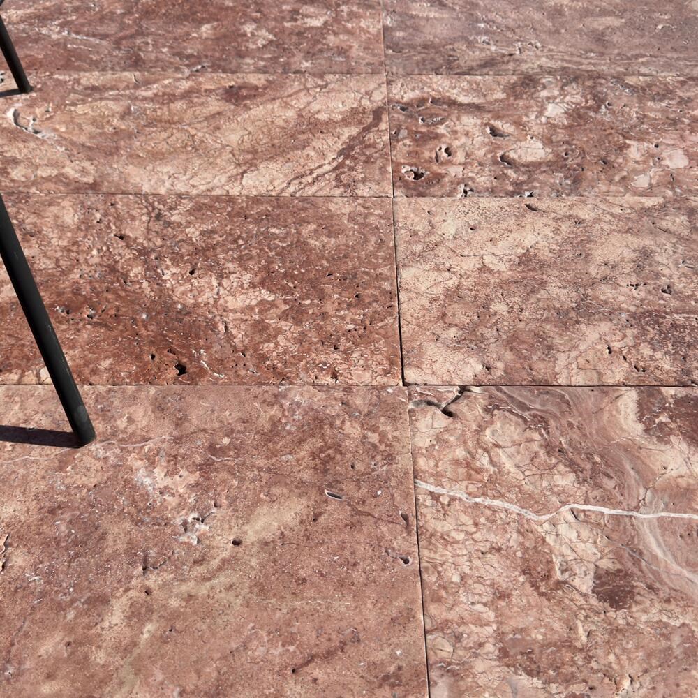 Le piastrelle in travertino Opium Red con finitura spazzolata vengono utilizzate per rivestimenti orizzontali o verticali, interni o esterni, in progetti residenziali o pubblici. Il travertino è una roccia sedimentaria formatasi in seguito a lunghi processi di erosione, deposizione, compattazione e cementazione di piccole particelle e fossili di piante e animali un tempo vissuti. Il metodo di formazione e la composizione determinano le proprietà: il travertino è una roccia calcarea, disponibile in varietà con densità diverse. Ecco le principali caratteristiche del travertino Rosso Oppio :