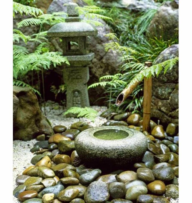 There are two types of Japanese gardens: Japanese rock garden, also called “dry landscape” garden and Japanese garden with a small lake in the middle. A common pattern for the first type of Japanese Garden is the symbolic presence of a stream through small pebbles that brings to mind a windind road. Other elements that can be used for recreating the natural elements (mountains, waters) are large boulders, sand, gravel and green moss. For this type of garden, plants are not excluded, only flowers are missing, for a more sober highlighting of the green shades associated with stone colors.